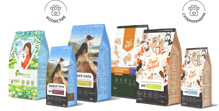 Корма Будь Здоров класса Суперпремиум для собак и кошек для полноценного и здорового питания каждый день.
