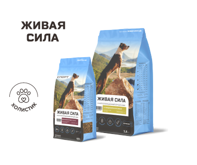 Корм ЖИВАЯ СИЛА класса Холистик представлен в двух линейках. Классическая для ежедневного питания щенков и собак, спортивная линейка для активных питомцев.